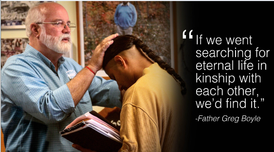 In a heart wrenching and also unexpectedly hilarious book, Boyle goes into the heart of Los Angeles gangs and uncovers universal kinship, a kinship that crosses gang lines and all other lines. In one of many stories from Tattoos on the Heart, Boyle has a conversation with an abandoned and abused homie from his graffiti crew, asking him what he did for Christmas a few days ago.